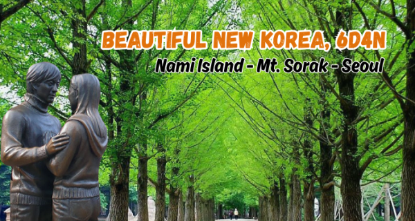 Setiba di Incheon disambut Guide, kemudian mengunjungi Pocheon Bidulginang Falls atau Ski Resort (Tidak termasuk perlengkapan dan pakaian ski pada periode Desember-Februari). Dilanjutkan menuju Nami Island yang merupakan tempat syuting “Winter Sonata” serial drama Korea yang mendunia. Dilanjutkan menuju Mt Sorak. Check in hotel istirahat. Bermalam di hotel/Condotel setaraf *** area Gangwon